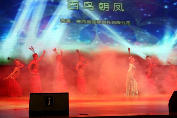 陜西銀行業(yè)慶祝建黨90周年文藝晚會于6月30日在西安市高新區(qū)管委會千人會堂隆重舉行。我公司員工演出的舞蹈節(jié)目《百鳥朝鳳》參加了演出?!栋嬴B朝鳳》寓意全國各族兒女心向共產(chǎn)黨,用藝術(shù)的手法表達(dá)華夏兒女對黨的熱愛,也充分展現(xiàn)陜國投的公司風(fēng)采和員工的精神風(fēng)貌。
