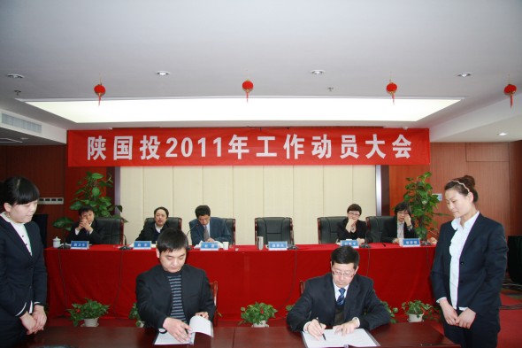 2011年2月10日,公司召開了陜國投2011年工作動(dòng)員大會(huì)。公司領(lǐng)導(dǎo)、公司全體員工參加了會(huì)議。會(huì)議由公司常務(wù)副總裁杜磊主持,黨委書記、董事長(zhǎng)薛季民作了動(dòng)員講話,并對(duì)當(dāng)前的要著重抓好的重點(diǎn)工作進(jìn)行了部署。