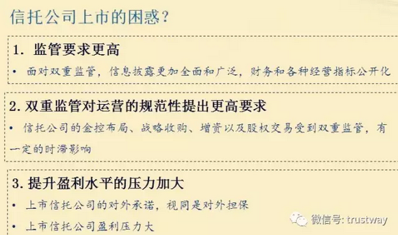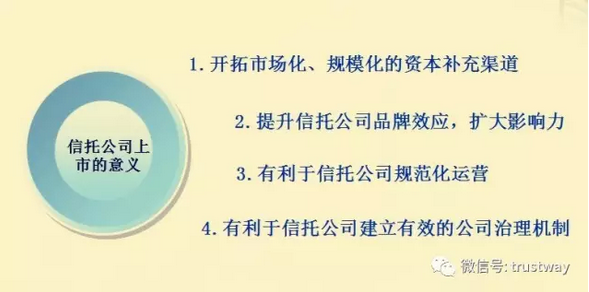 他認(rèn)為,對于信托公司來說,上市不僅可以為信托公司開拓市場化、規(guī)范化的資本充足渠道,還可以提升品牌效應(yīng)擴(kuò)大影響力,以及規(guī)范運(yùn)營和建立有效治理機(jī)制。