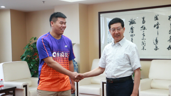 8月29日楊力驍將前往天津參加全運會群眾組羽毛球決賽,臨近出發(fā)前,董事長薛季民特意前來祝賀。他表示,這次打入決賽,能代表陜西、代表公司前去“戰(zhàn)斗”,一定要發(fā)揚體育精神,努力拼搏。最后,薛季民鼓勵道:“預(yù)祝你獲得好成績,我們都在公司等你凱旋而歸!”