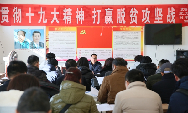 完成準(zhǔn)備工作后,以支部為單位形成工作組迅速組織開展入戶調(diào)查及政策宣傳工作。武安村村組分布較為分散,幫扶人員在村民的帶領(lǐng)下走村串巷、深入調(diào)查走訪。一戶挨著一戶走、一家挨著一家談,詳細了解貧困戶家庭收入情況,認真調(diào)查產(chǎn)業(yè)幫扶項目、教育扶貧、異地搬遷、危房改造、醫(yī)療補助等各項措施是否落實到位,詢問“兩不愁”“三保障”的脫貧目標(biāo)是否實現(xiàn),吸納貧困戶對幫扶工作的意見和建議,真正把精準(zhǔn)扶貧做細做實。