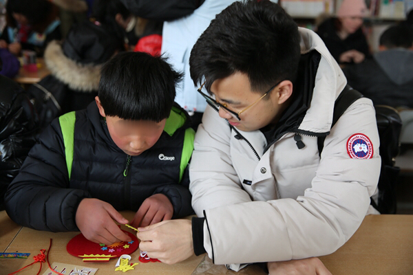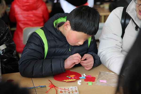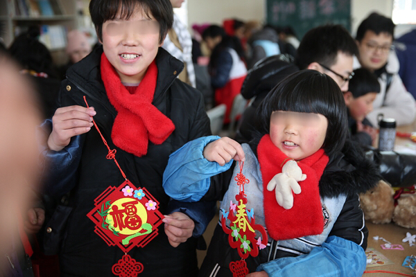 一大早,青年志愿者們便帶著精心準(zhǔn)備的小禮物和手工制作材料出發(fā)了,抵達(dá)兒童村時(shí)恰逢孩子們在冬日陽光下活動(dòng)。青年志愿者們迅速融入,互動(dòng)唱歌、聊天、游戲后,為孩子們帶來了一節(jié)生動(dòng)的手工小講座,并與孩子們一起結(jié)對制作DIY新春賀卡、春節(jié)飾品??粗煺娴暮⒆佑瞄L著凍瘡的小手認(rèn)真地在作品上寫下新春祝福,并將滿滿的心意回贈(zèng)時(shí),志愿者們被深深觸動(dòng),紛紛表示,愿意更盡一份心力,幫助更多不幸的孩子健康成長!