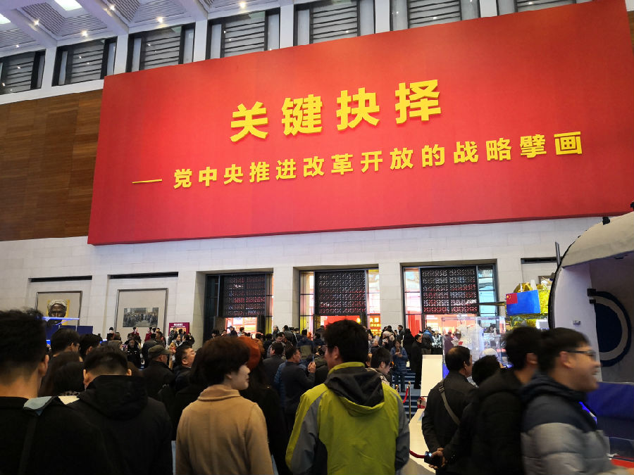 偉大的變革——慶祝改革開放40周年大型展覽”分為“偉大的變革、壯美篇章、關(guān)鍵抉擇、歷史巨變、大國氣象、面向未來”六個(gè)展區(qū),展覽以改革開放40年光輝歷程為主線,聚焦改革開放以來的重大時(shí)間、事件節(jié)點(diǎn),集中宣傳展示改革開放和社會(huì)主義現(xiàn)代化建設(shè)取得的重大成就,突出展示黨的十八大以來,以習(xí)近平同志為核心的黨中央堅(jiān)定不移高舉改革開放旗幟,推進(jìn)全面深化改革、全面擴(kuò)大開放的戰(zhàn)略決策部署。