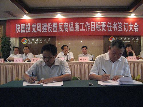 2007年8月24日下午,公司在高速神州酒店召開了陜國投黨風建設暨反腐倡廉工作目標責任書簽訂大會。