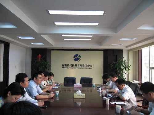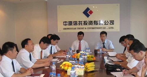 2007年8月7日至8月13日,趙輝副總裁率信托一部、投資銀行部、信托財(cái)務(wù)部、計(jì)劃財(cái)務(wù)部、人力資源部等部門負(fù)責(zé)人和業(yè)務(wù)骨干一行七人赴鄭州、濟(jì)南,與百瑞信托投資有限責(zé)任公司、中原信托投資有限公司、英大信托投資有限責(zé)任公司、山東省國際信托投資有限公司就行業(yè)發(fā)展戰(zhàn)略構(gòu)想、信托業(yè)務(wù)拓展情況、信托產(chǎn)品營銷等方面與同行進(jìn)行交流、研討。