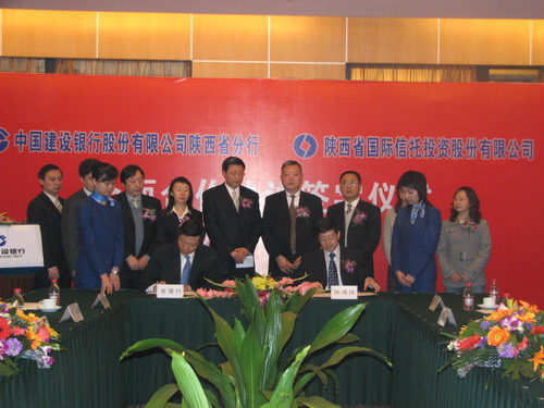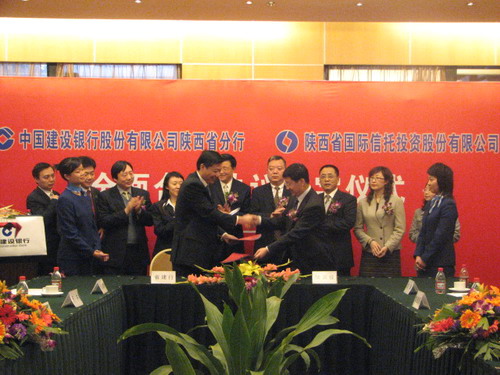2007年2月12日下午,我公司與中國建設銀行股份有限公司陜西省分行在喜來登大酒店簽署了《全面合作協(xié)議書》,拉開了兩家單位在21個方面進行全面合作的帷幕。公司黨委書記、董事長薛季民、黨委副書記兼紀委書記黎惠民、副總裁何熙平、副總裁趙輝、總會計師李玲及信托部門有關人員等參加了簽字儀式。建設銀行陜西省分行行長曾益、副行長魏承國,省分行機構業(yè)務部總經(jīng)理于卉、省分行個人金融業(yè)務部總經(jīng)理楊利民等出席簽字儀式。薛季民董事長、曾益行長先后發(fā)表了熱情洋溢的講話,共同祝愿雙方取得實質性合作,實現(xiàn)雙贏。