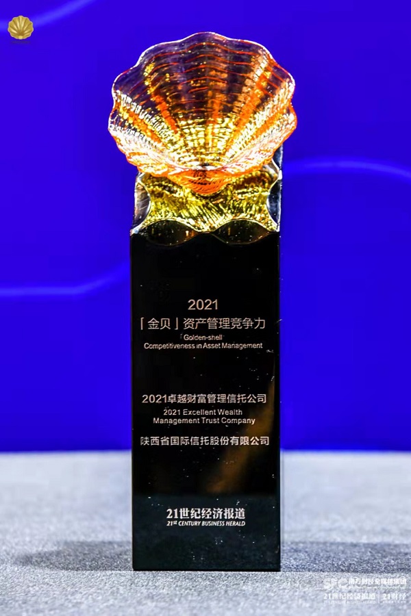 9月17日,2021中國(guó)資產(chǎn)管理年會(huì)暨第十四屆中國(guó)資產(chǎn)管理“金貝獎(jiǎng)”頒獎(jiǎng)盛典在上海舉行。經(jīng)過評(píng)審團(tuán)各位行業(yè)專家和專業(yè)評(píng)委的綜合評(píng)審,陜國(guó)投榮獲“2021卓越財(cái)富管理信托公司”獎(jiǎng)項(xiàng)。