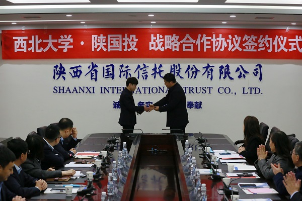 10月21日下午,陜國投與西北大學(xué)戰(zhàn)略合作協(xié)議簽約儀式在陜國投大廈舉行。陜國投黨委書記、董事長(zhǎng)薛季民,西北大學(xué)黨委副書記、校長(zhǎng)郭立宏出席活動(dòng)并講話。陜國投黨委副書記葉瑛,西北大學(xué)黨委常委、副校長(zhǎng)吳振磊等參加儀式。