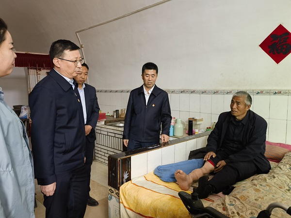 武安村位于澄城縣東北部,地處半丘陵地帶,共有770戶村民,其中脫貧戶278戶1035人。去年,張宏印、劉夢佳、常玉貴和李保才四戶村民因病因災(zāi)突發(fā)嚴(yán)重生活困難,成為幫扶中的重點監(jiān)測戶,一直牽掛著公司領(lǐng)導(dǎo)的心。64歲的張宏印,干農(nóng)活時發(fā)生機械意外事故,導(dǎo)致小腿開放式骨折。解志炯來到張宏印家里,詳細(xì)詢問手術(shù)和恢復(fù)情況,送上公司員工愛心捐款一萬元慰問金,囑咐他堅強樂觀面對生活,安心養(yǎng)病,有困難大家一起想辦法克服。