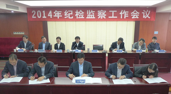 3月27日上午,公司組織召開(kāi)了2014年紀(jì)檢監(jiān)察工作會(huì)議。按照議程,紀(jì)委書(shū)記王曉燁首先傳達(dá)了省國(guó)資委系統(tǒng)紀(jì)檢監(jiān)察工作會(huì)議精神,并作紀(jì)檢監(jiān)察工作報(bào)告;接著,黨委書(shū)記、董事長(zhǎng)薛季民與各部門(mén)簽訂了《黨風(fēng)建設(shè)和反腐倡廉工作目標(biāo)責(zé)任書(shū)》;最后,薛季民書(shū)記作重要講話。黨委副書(shū)記、總裁姚衛(wèi)東主持會(huì)議。公司領(lǐng)導(dǎo)和西安地區(qū)的全體員工參加會(huì)議,駐外部門(mén)員工以電話會(huì)議形式參會(huì)。