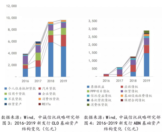 從2019年情況來(lái)看,信托公司增量和存量資產(chǎn)證券化業(yè)務(wù)基礎(chǔ)資產(chǎn)類型豐富,同時(shí)對(duì)基礎(chǔ)資產(chǎn)的風(fēng)控要求進(jìn)一步提高,底層分散和資質(zhì)較好的基礎(chǔ)資產(chǎn)更受青睞。